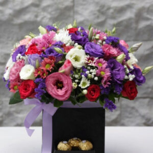 Rengarenk Bahar Çiçekleri Kullanılan Diğer Ürünler: Çekmeceli Kutu ve 6 Adet Çikolata Ürün Boyutu: 30 cm Özenli, güzel ve neşeli