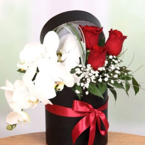 Kutuda Kırmızı Gül ve Orkide