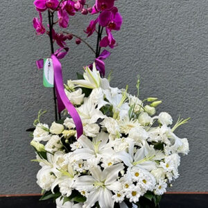 Phalaenopsis Mor Orkide: 2 Dallı Beyaz Lilyum, Beyaz Gül ve Beyaz Papatya Kullanılan Diğer Ürünler: Beyaz Seramik Lilyumlar taze olduğunda açmışları