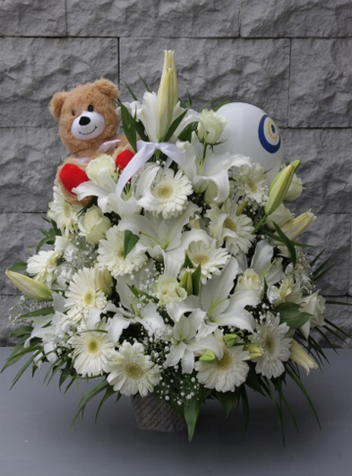 Beyaz Lilyum, Beyaz Gül, Beyaz Gerberalar, Ayıcık ve Balon