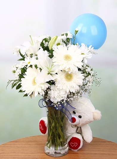 Kullanılan Diğer Ürünler : Cam Vazo, Balon ve Oyuncak Peluş Ayıcık.