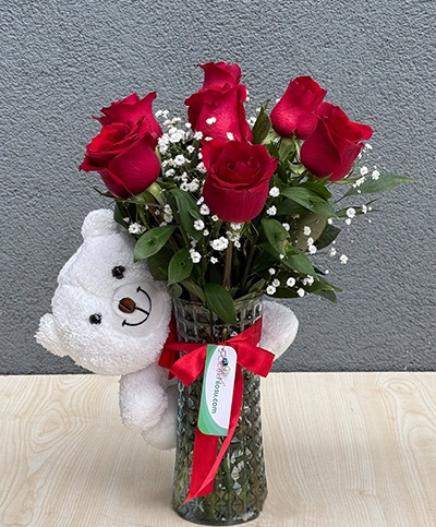 Sevgilinize aşkınızı anlatacak çiçeklerden gül ve oyuncak ayıcık ile O’na sürprizlerin en güzelini yapın.